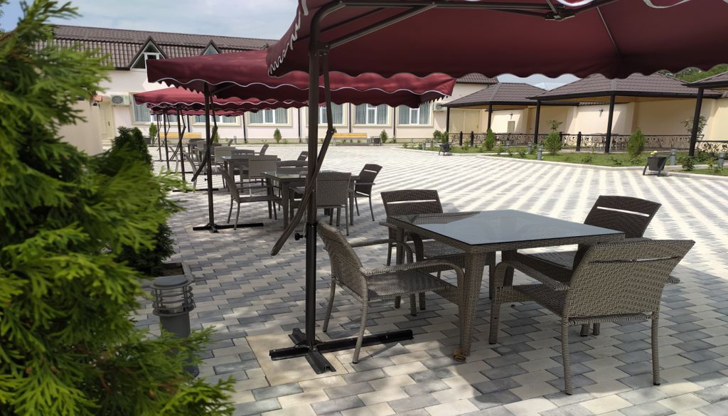 Otelin geniş həyətyanı sahəsi və qonaqların istifadəsi üçün besedkalar var.